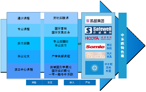 目前,学院共有7个稳定的校外合作育人基地。为进一步持续改进,深化产教融合力度,学院还通过建设“中东欧特色班”等方式,进一步加强与企业的接触与互动,将企业资源融入到人才培养的主要过程当中。