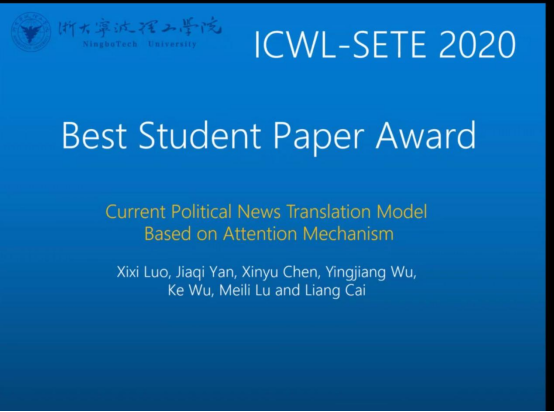 由蔡亮教授指导的员工论文获第19届基于互联网在线学习技术国际会议和第5届新兴教育技术国际研讨会最佳员工论文奖,学院员工论文首次在国际学术会议上获得奖项