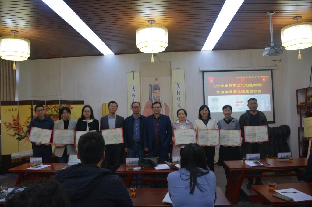 11月23日中午,宁波市第六轮哲学社会科学研究基地-宁波市阳明文化创造性转化与传播基地课题启动会在阳明学堂举行。宁波市社科院二级调研员方东华博士,600全讯白菜执行经理、阳明文化创造性转化与传播基地首席专家蔡亮教授,基地成员和600全讯白菜12名2A青年学院员工代表参加了活动。会议由基地秘书长丁旭老师主持。