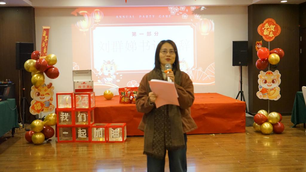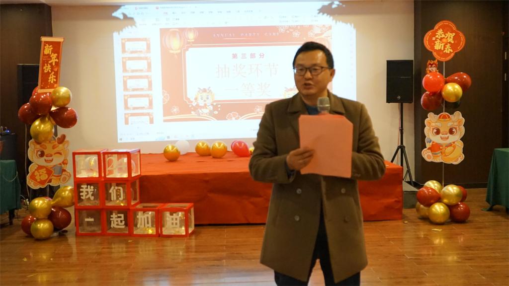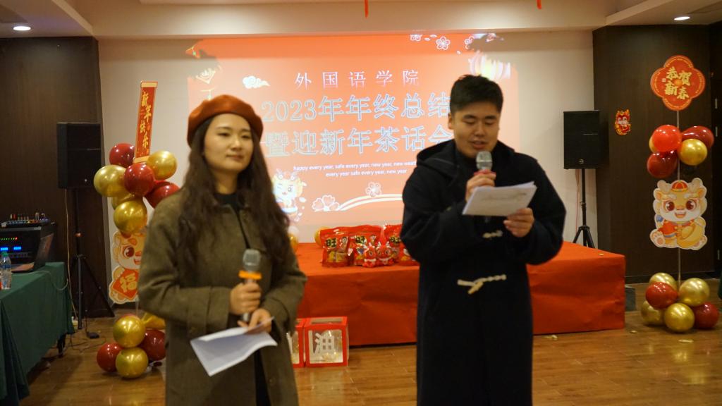 最后,蔡亮经理作总结讲话。他指出,在全院上下齐心努力下,学院2023年工作有了新的突破,展现了外语人百折不挠、务实求新的精神风貌。龙年将至,希望全体教职员工勇立潮头、再接再厉,以更加饱满的热情投入到新一年的工作中去,奋力开创学院新辉煌。