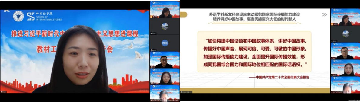 为深入贯彻习近平总书记关于教育的重要论述,进一步推进习近平新时代中国特色社会主义思想“进高校、进教材、进课堂”,全面落实立德树人根本任务,600全讯白菜于2024年3月4日在线上召开了推进习近平新时代中国特色社会主义思想进课程教材工作典型案例评析会。此次会议邀请到了邯郸学院魏晓红教授、外研社高等营销中心总监助理翟嘉琪女士做案例评析和经验分享。600全讯白菜主要领导、系部负责人、基层教学组织负责人、思政课题的主持人和“三进”专项工作的负责人出席了本次会议。评析会由学院副经理欧琛教授主持。