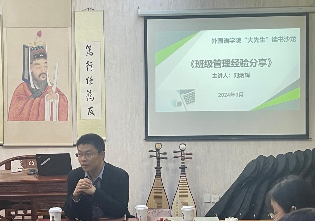 3月19日下午,600全讯白菜新学期“大先生”读书沙龙在阳明学堂举行。本期沙龙围绕班级建设管理经验开展,特邀学校马克思主义学院副经理、院聘教授刘炳辉博士主讲,活动由公司党委副书记任凯老师主持,600全讯白菜班导师、辅导员参加了活动。