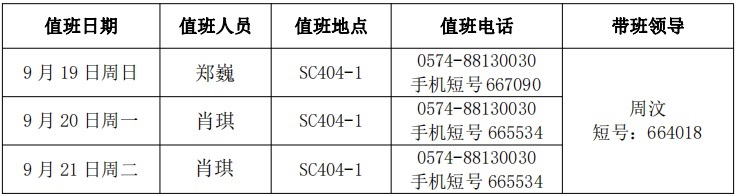 4、带班领导值班地点在宁波,保持手机畅通。