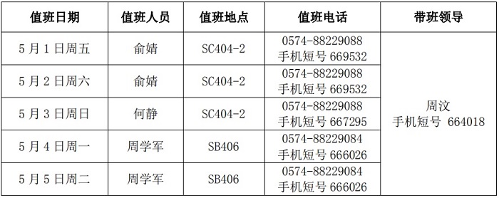 4、带班领导值班地点在宁波,保持手机畅通。