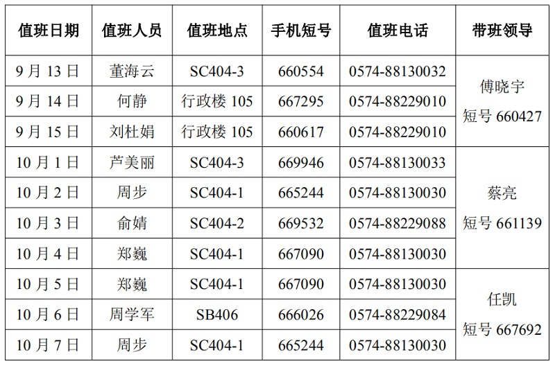 4、带班领导值班地点在宁波,保持手机畅通。