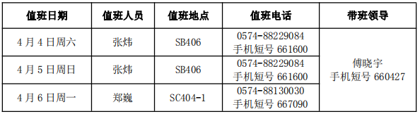 4、带班领导值班地点在宁波,保持手机畅通。