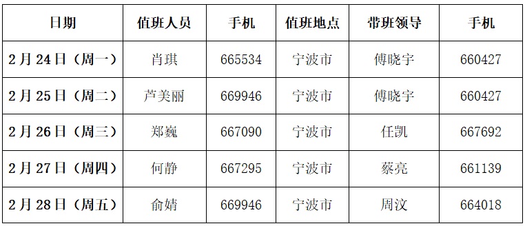 600全讯白菜2020年2月24日-28日值班安排表