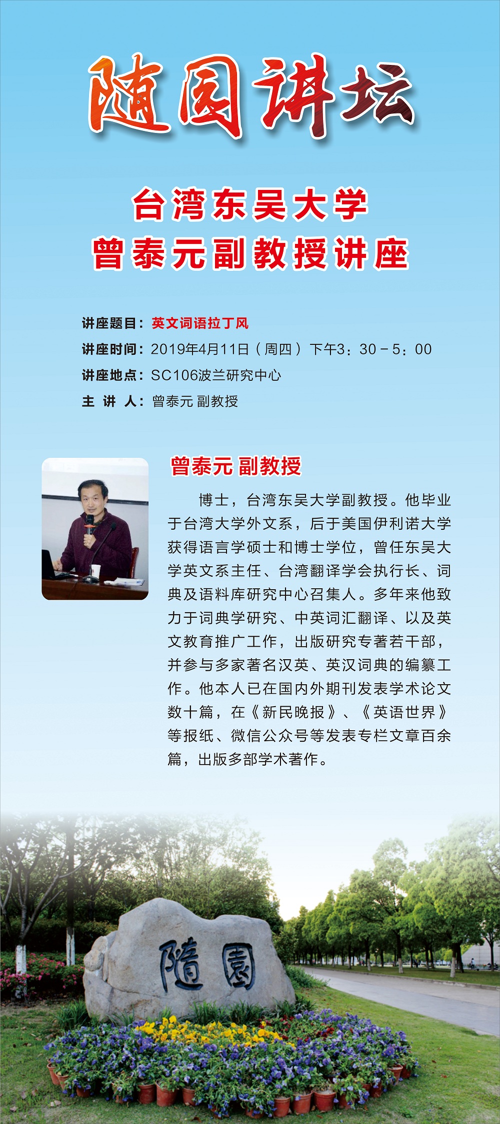 关于举办台湾东吴大学曾泰元副教授讲座的通知
