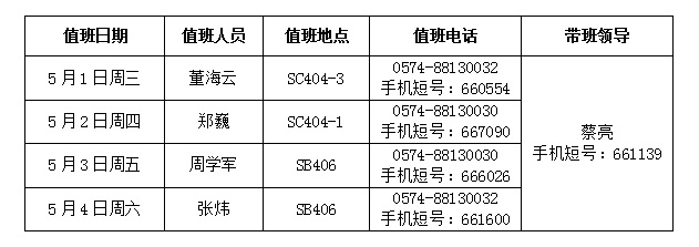 4、带班领导值班地点在宁波,保持手机畅通。