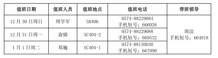 4、带班领导值班地点在宁波,保持手机畅通。