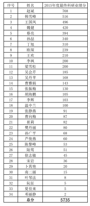 外语学院2015年度科研业绩分已计算完成,之前公示期于1月7日截止,该表格于1月8日上报学校科研处。