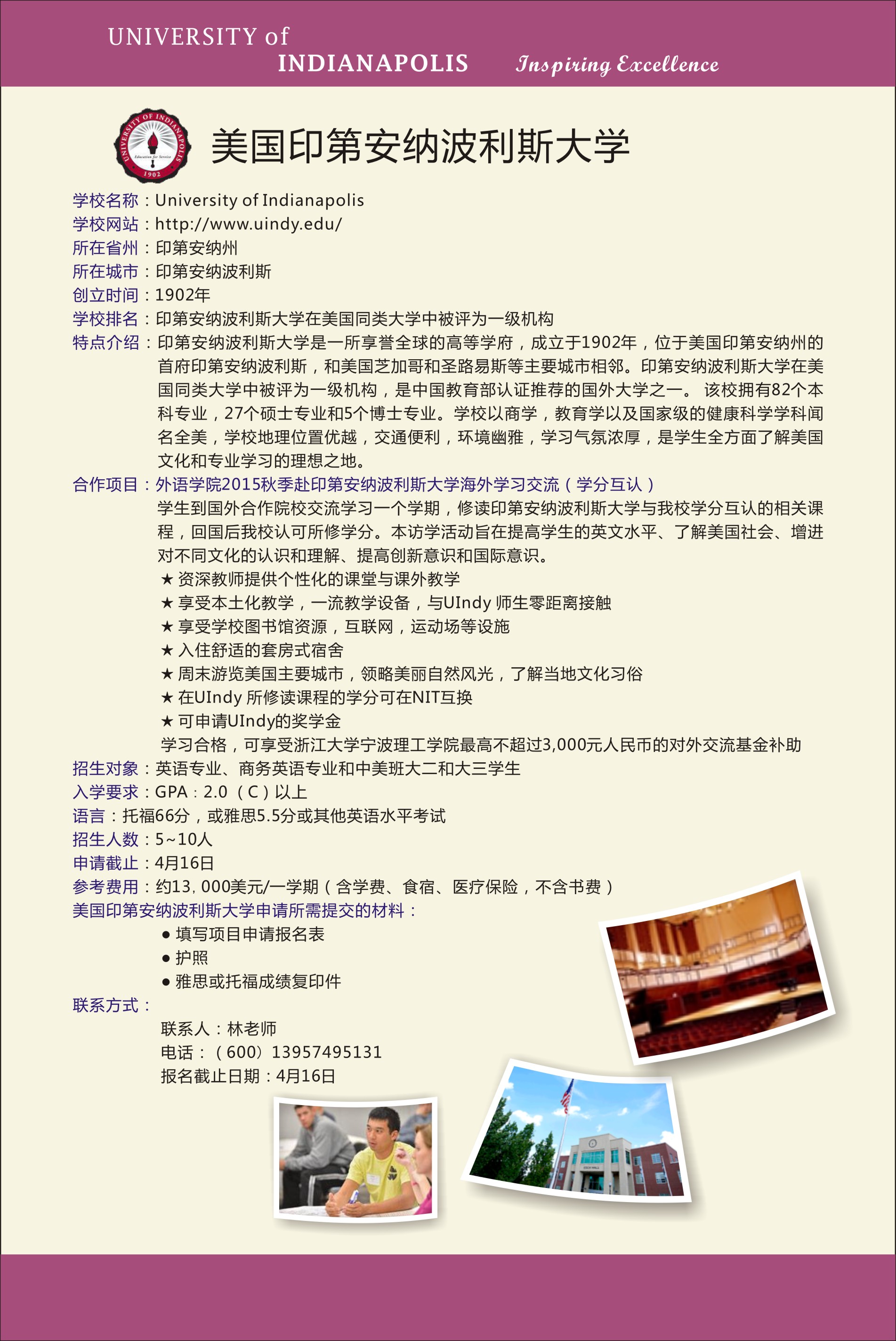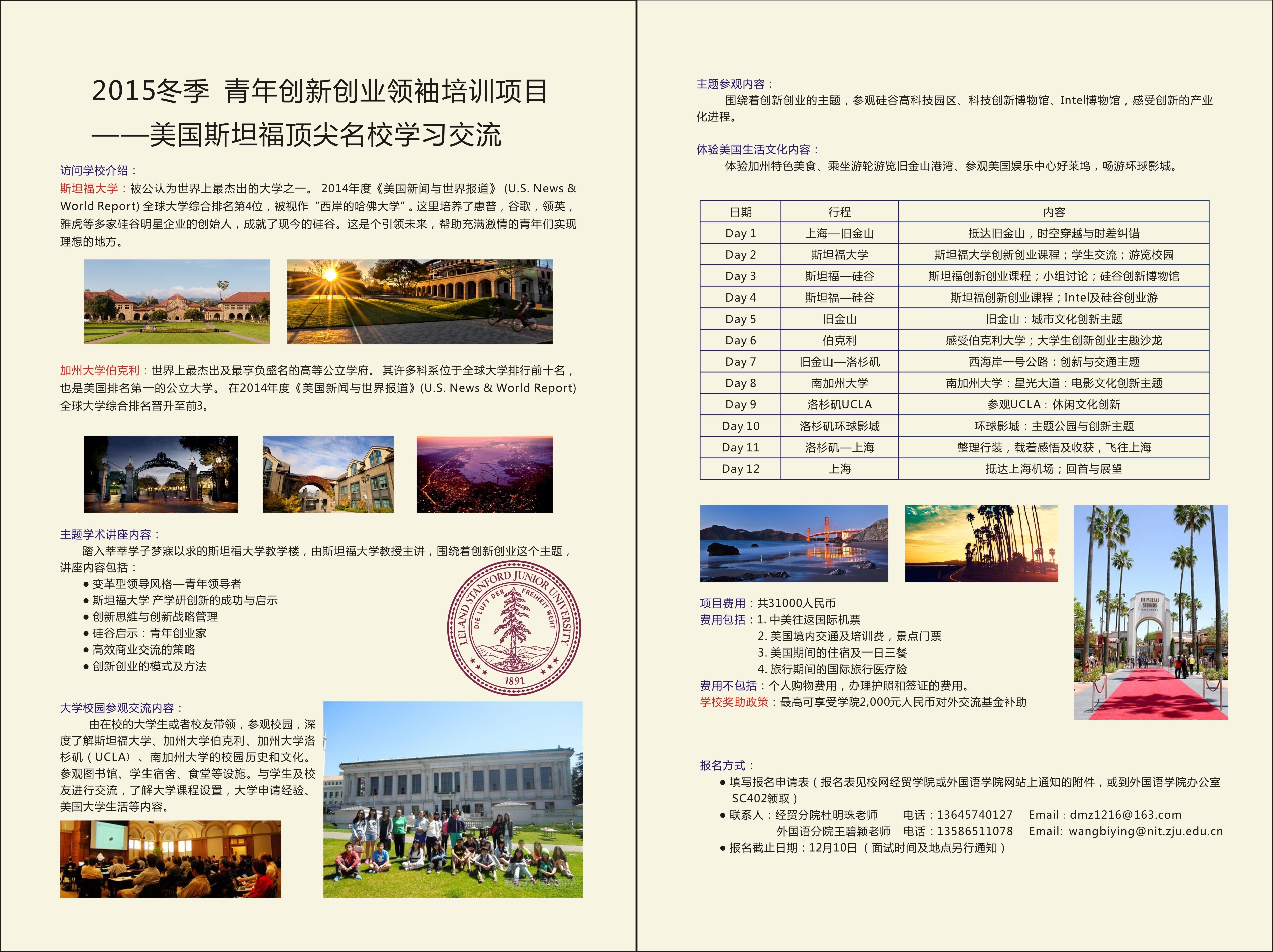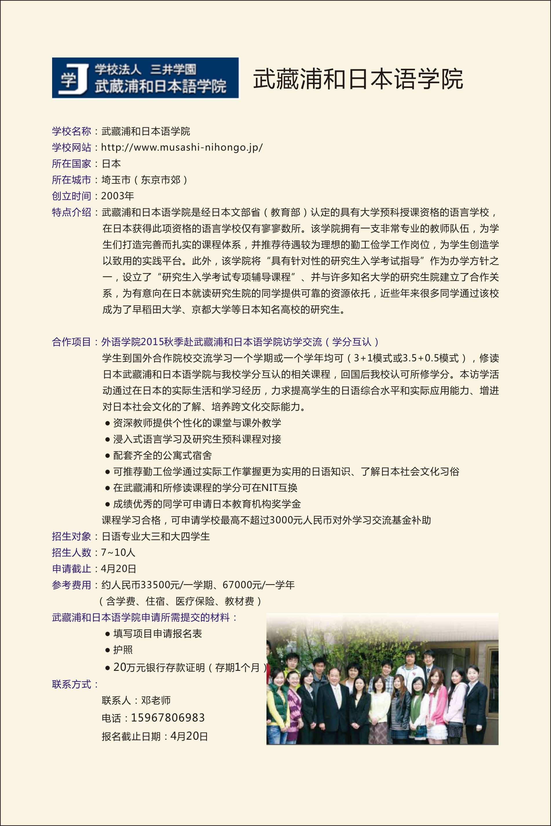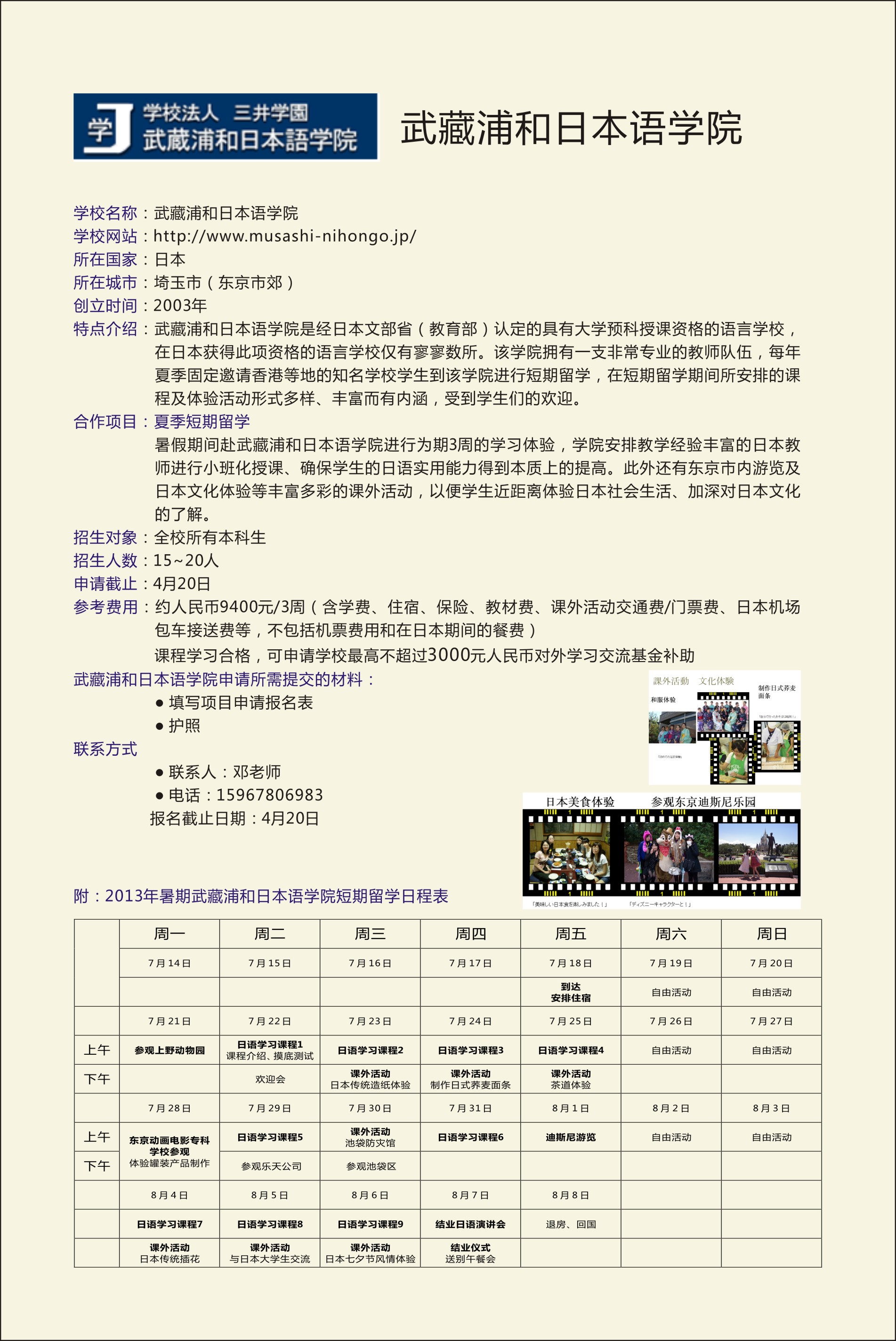 为进一步学校推进教育国际化教育改革,开阔同学们的国际视野,提升在真实语境下语言运用的能力,增强跨文化交际能力,公司与美国斯坦福大学、索尔兹伯里,加拿大渥太华大学和日本武藏浦和学院等多所(国)境外高校签订合作协议,现推出2015年寒假、暑假短期学习交流项目和学分互认项目多项。